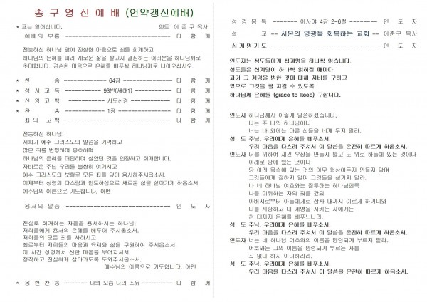 2020년 설날 가정예배 순서지