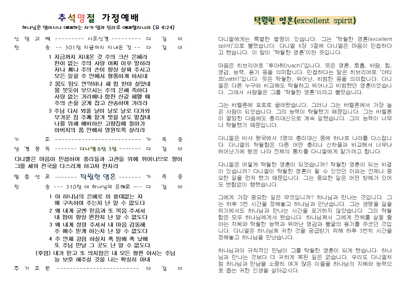 2024년 추석명절 가정예배 순서지