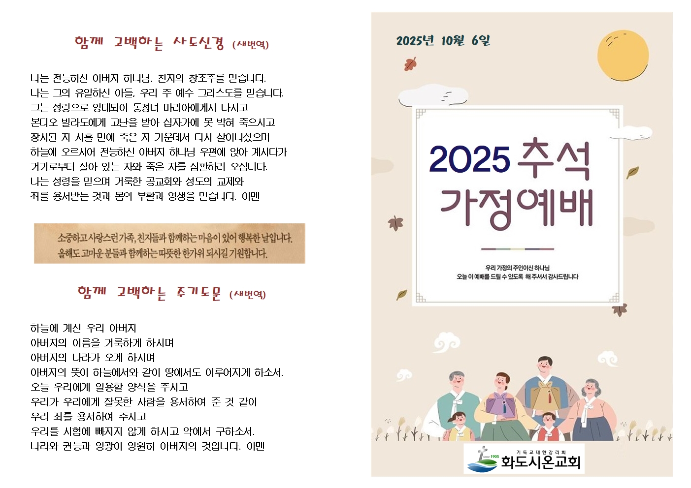 2025년 추석명절 가정예배 순서지