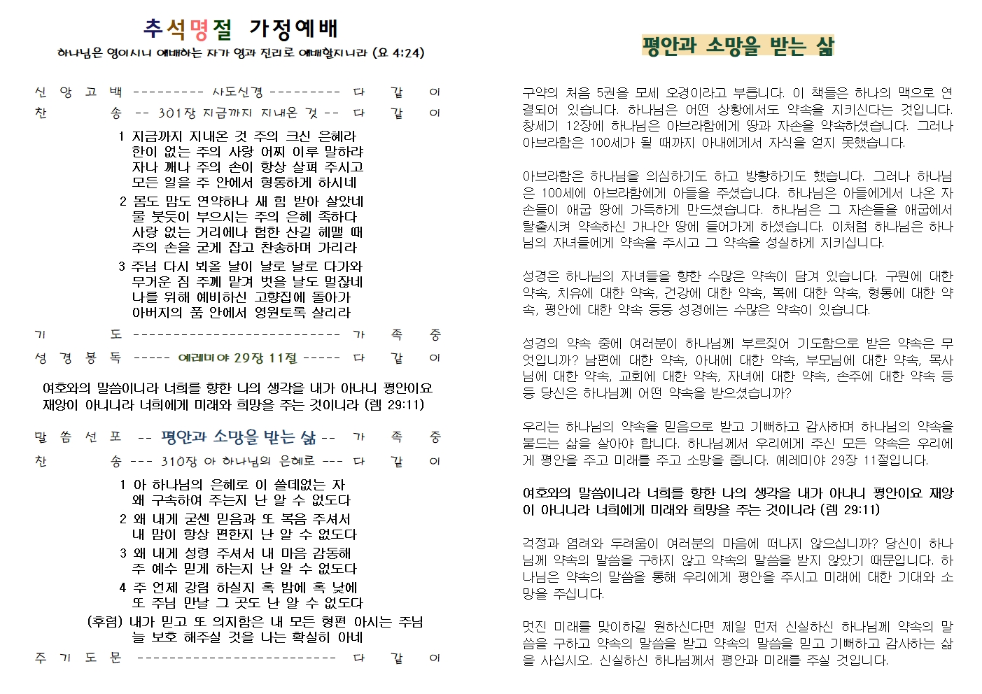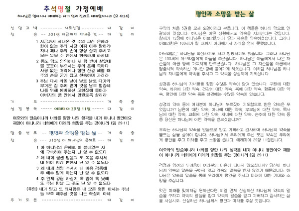 2021년 추석명절 가정예배 순서지