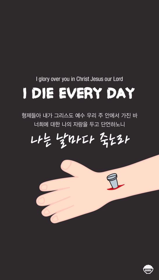 말씀 : 형제들아 내가 그리스도 예수 우리 주 안에서 가진 바 너희에 대한 나의 자랑을 두고 단언하노니 나는 날마다 죽노라 (고린도전서 15장 31절)