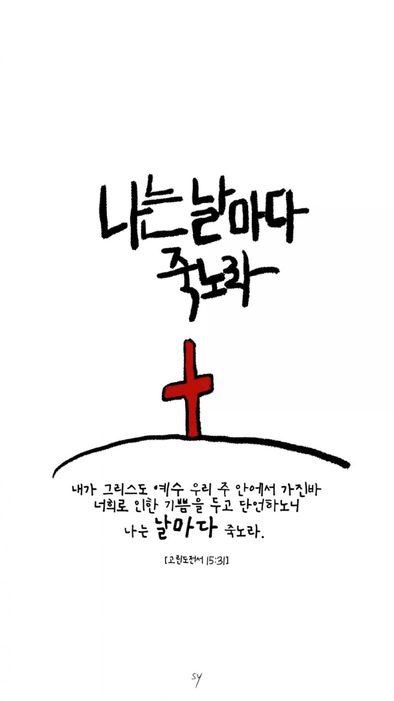 말씀 : 형제들아 내가 그리스도 예수 우리 주 안에서 가진 바 너희에 대한 나의 자랑을 두고 단언하노니 나는 날마다 죽노라 (고린도전서 15장 31절)