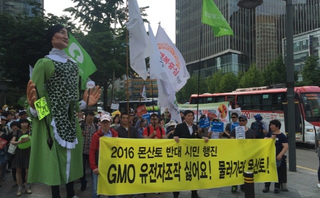 ▲ 지난 5월 21일 광화문광장 인근에서 열린 ‘몬산토 반대 시민행진’(사진-고승은)