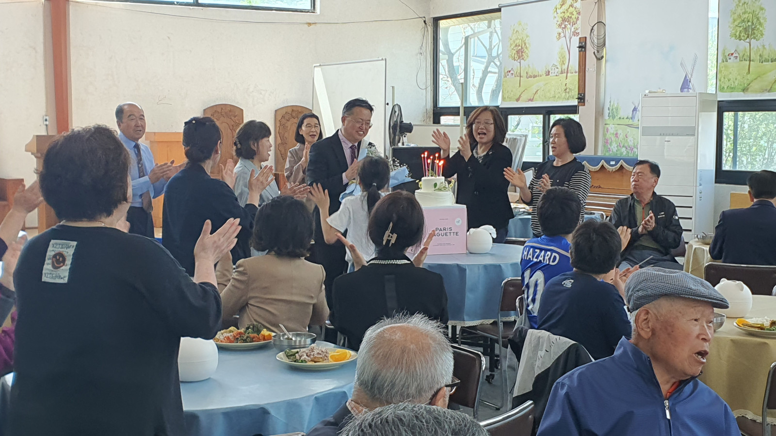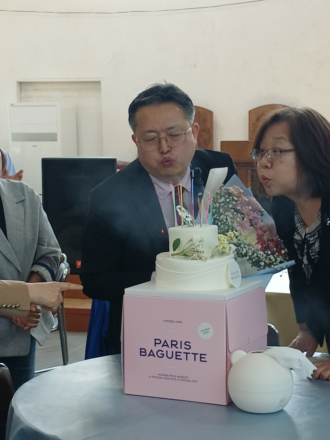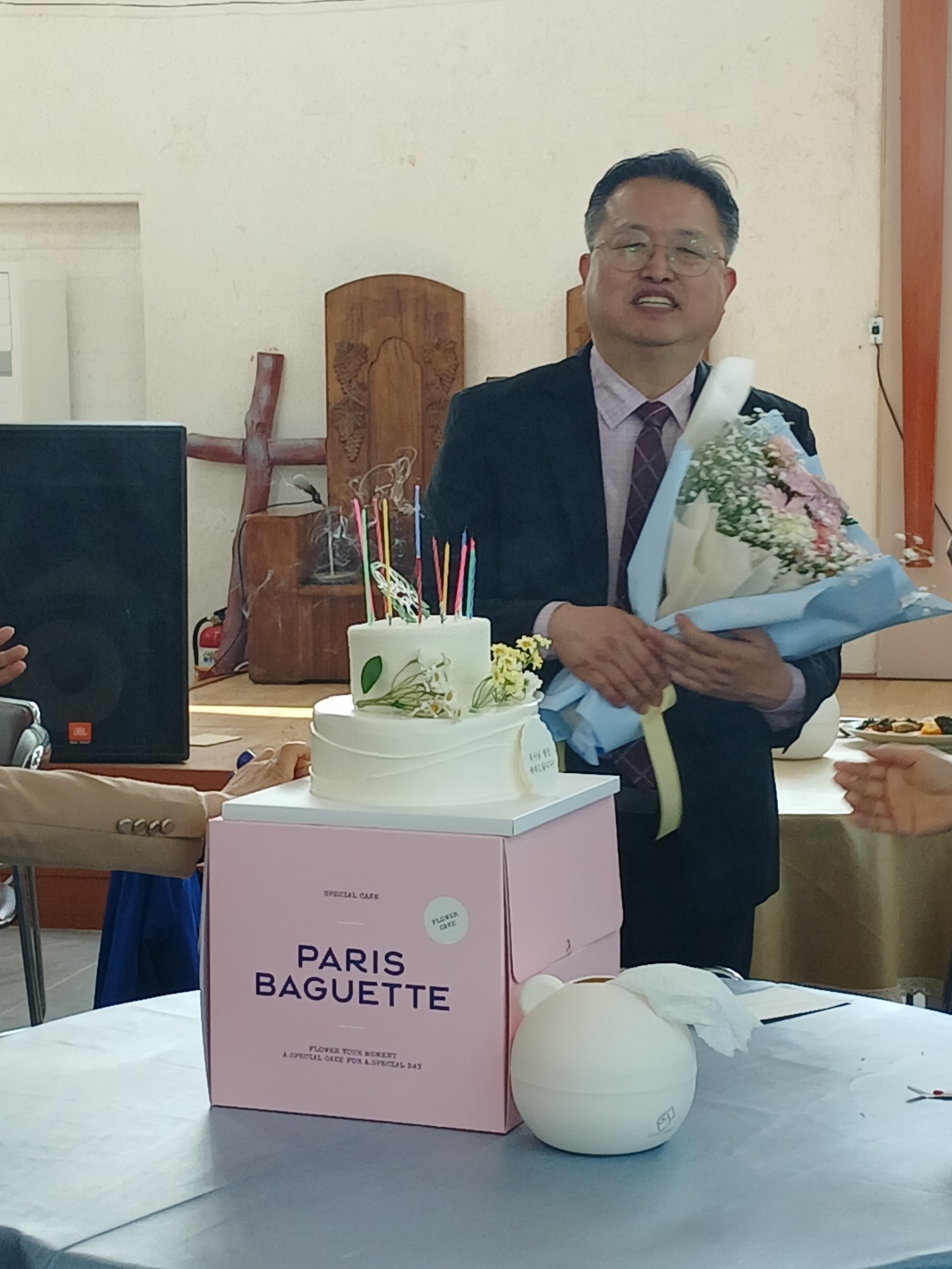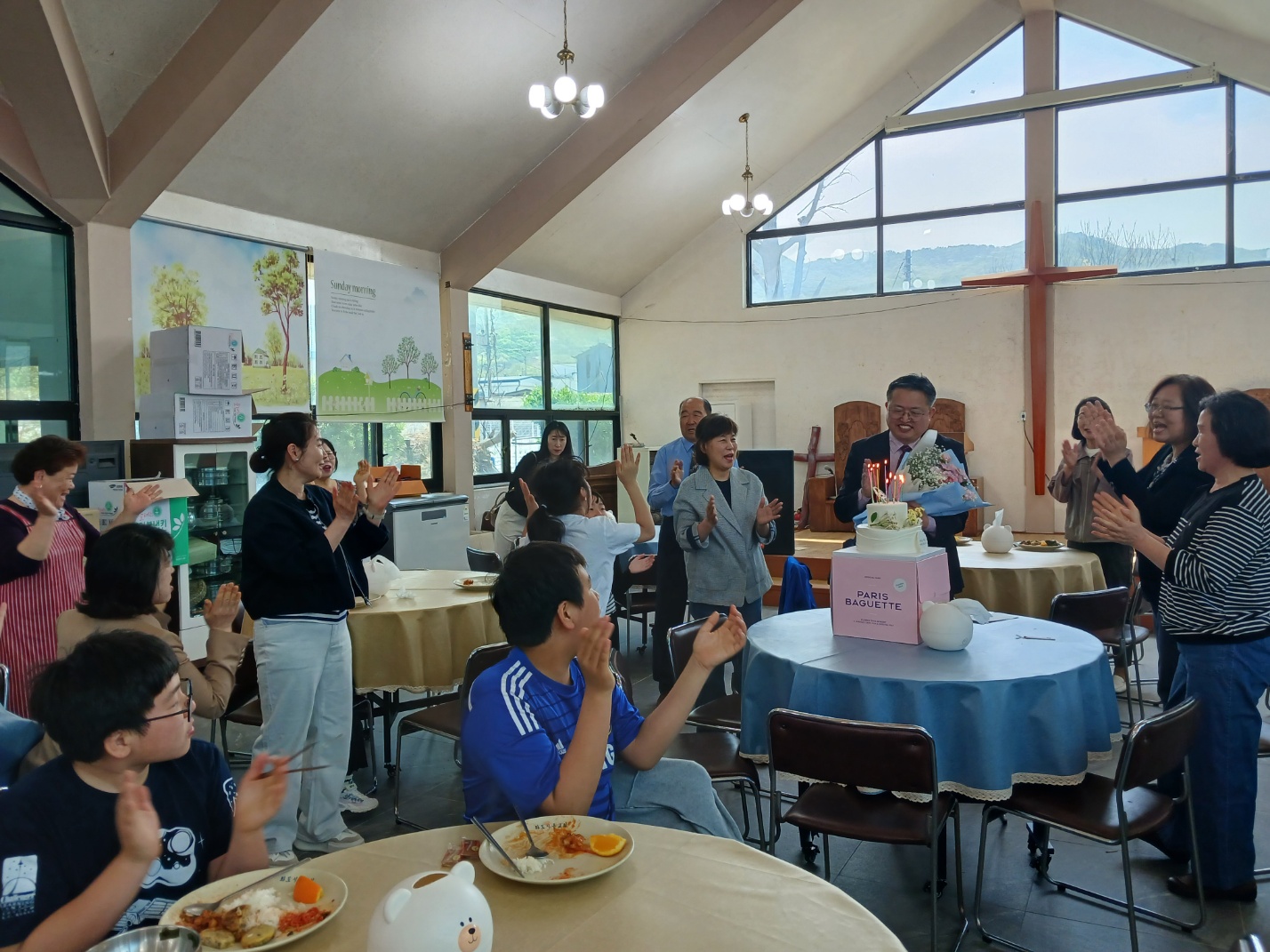 * 2026년 4월 19일 주일 2부예배 후 점심식사 시간에 온 교우가 함께 담임목사님 생신을 축하드렸습니다.
