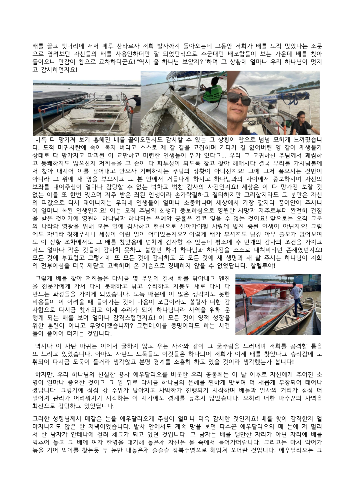 2025년 8월 아마존 홍성진 선교사님 선교편지