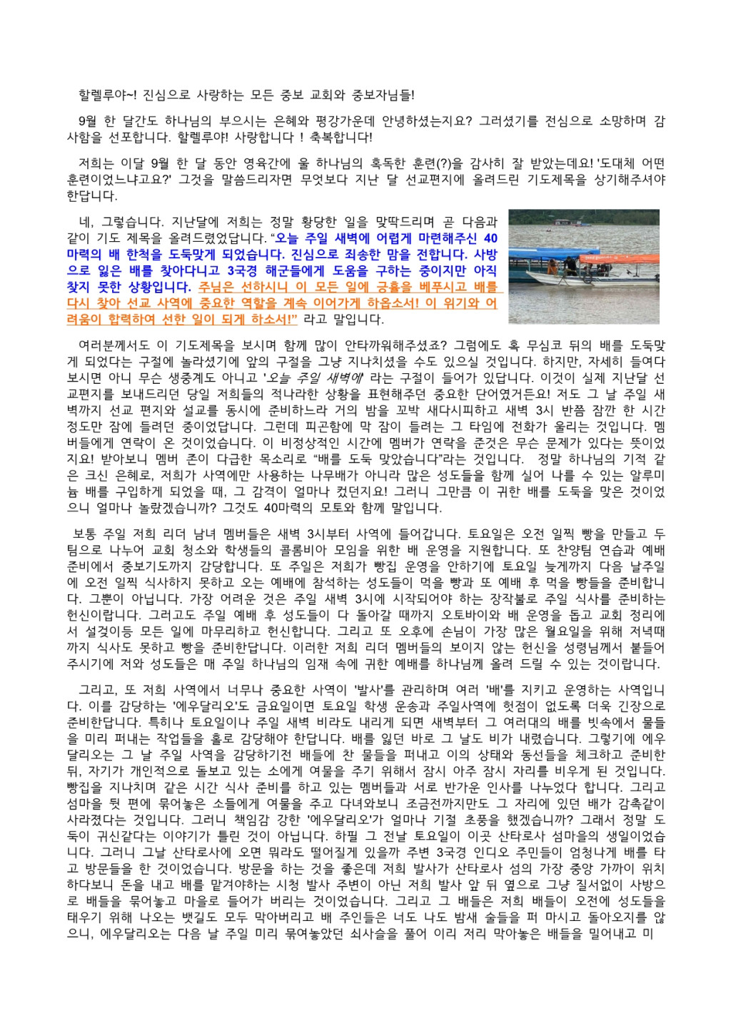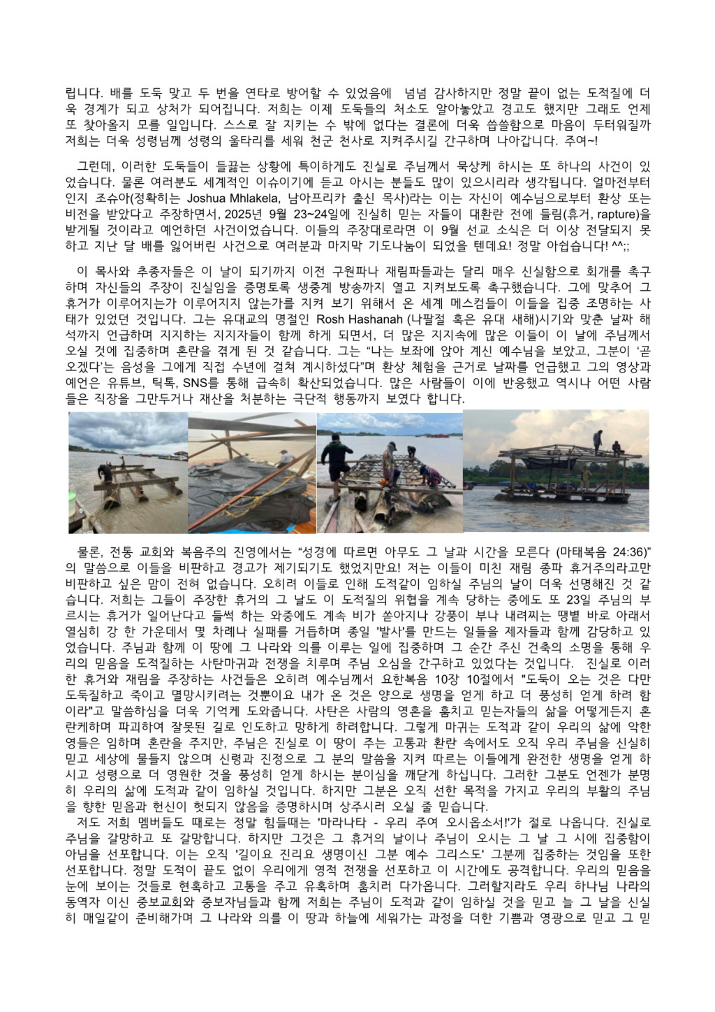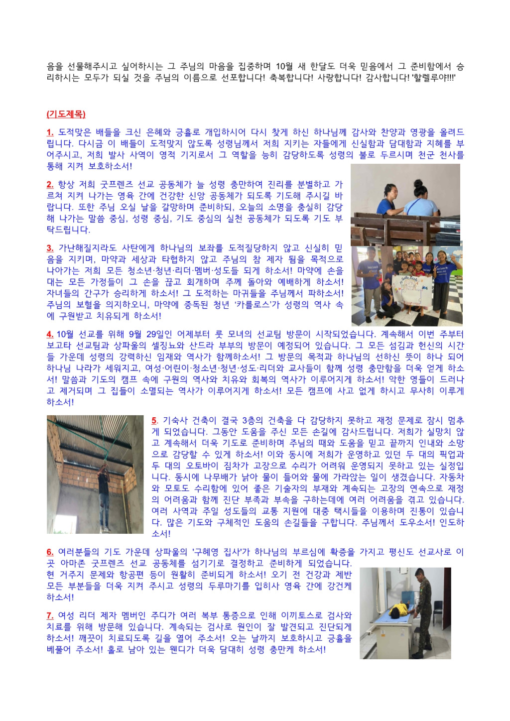 2025년 9월 아마존 홍성진 선교사님 선교편지