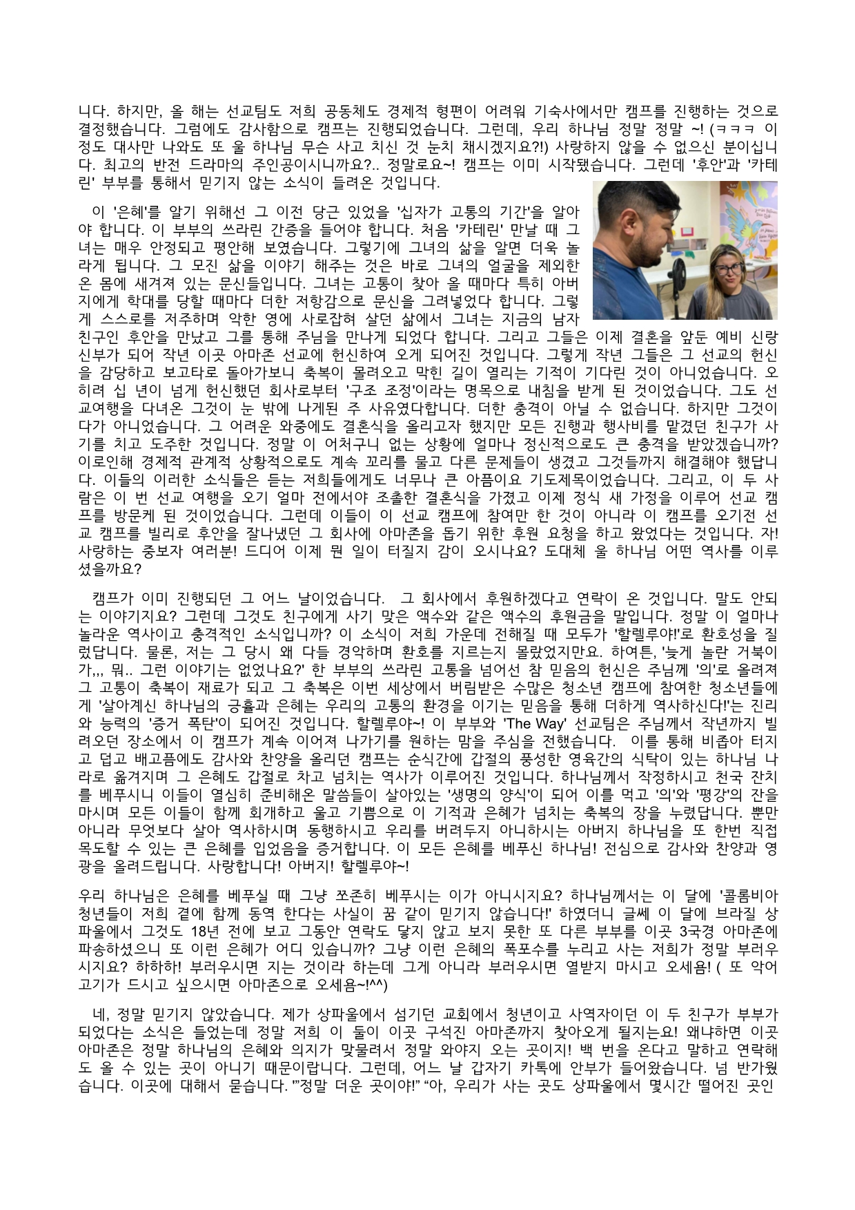 2024년 8월 아마존 홍성진 선교사님 선교편지