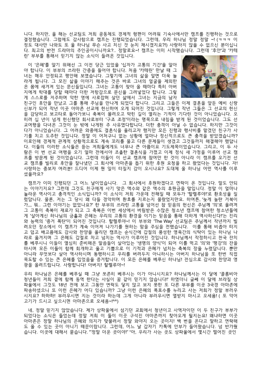 2025년 8월 아마존 홍성진 선교사님 선교편지