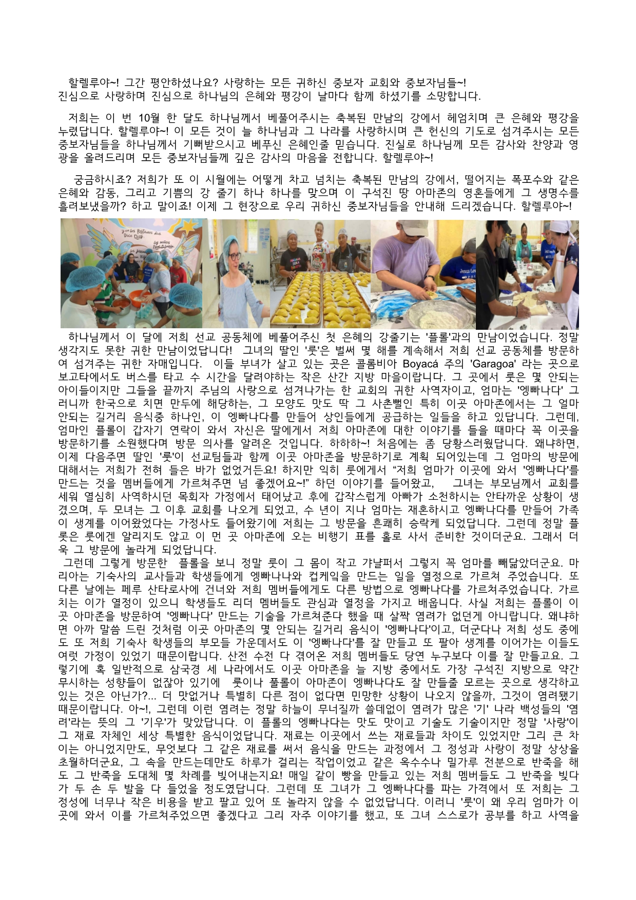 2024년 10월 아마존 홍성진 선교사님 선교편지