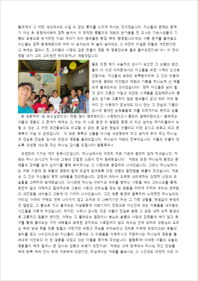 2025년 4월 아마존 홍성진 선교사님 선교편지