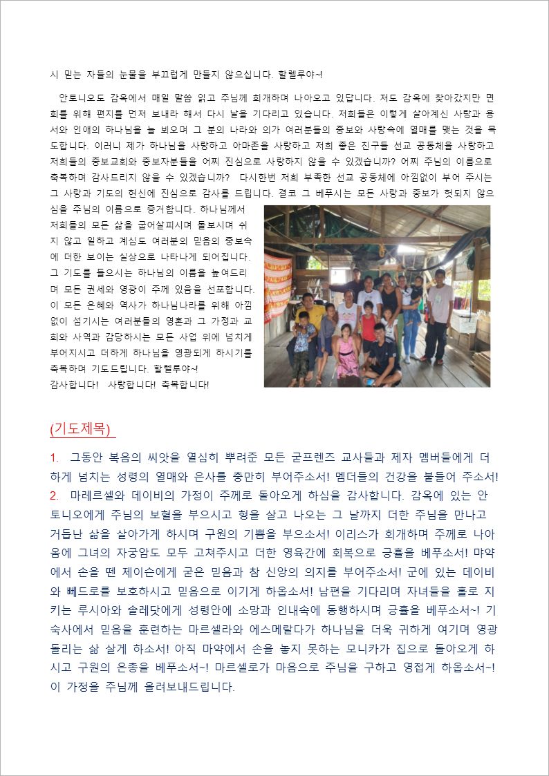 2025년 3월 아마존 홍성진 선교사님 선교편지
