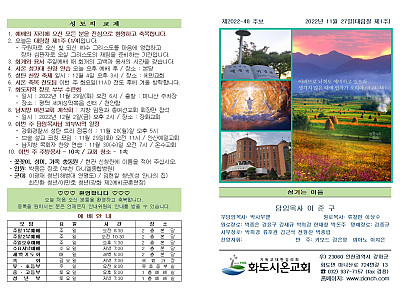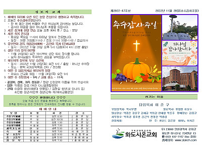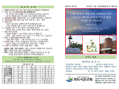 2022년 11월 20일 화도시온교회 주보