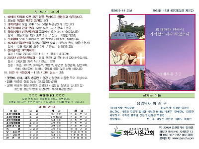 2022년 12월 11일 화도시온교회 주보