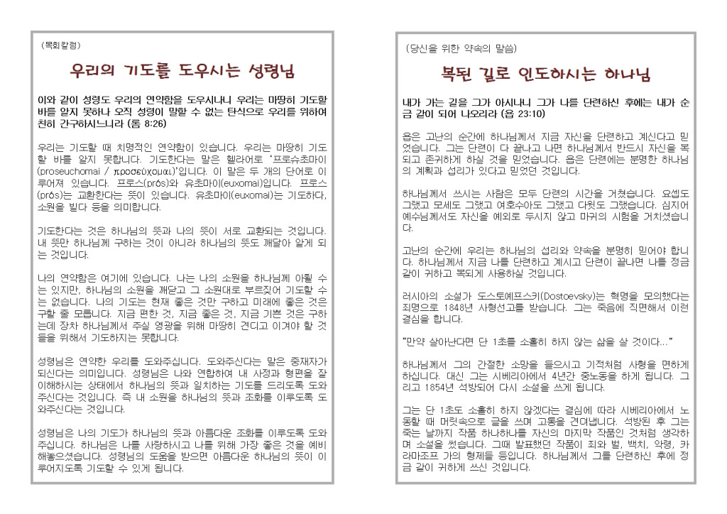 (성령강림 후 20-1) 하나님의 은혜가 임하는 마음 (영상)