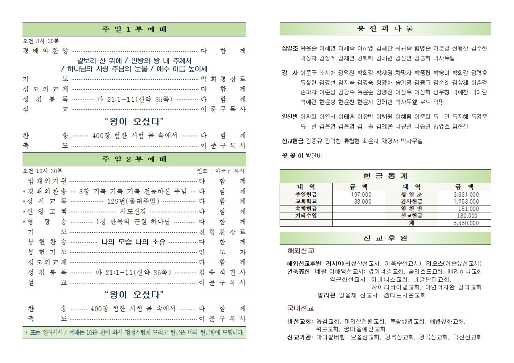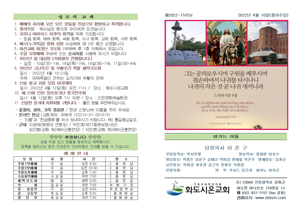 2022년 4월 10일 화도시온교회 주보