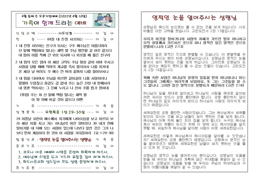 2022년 4월 3일 화도시온교회 주보