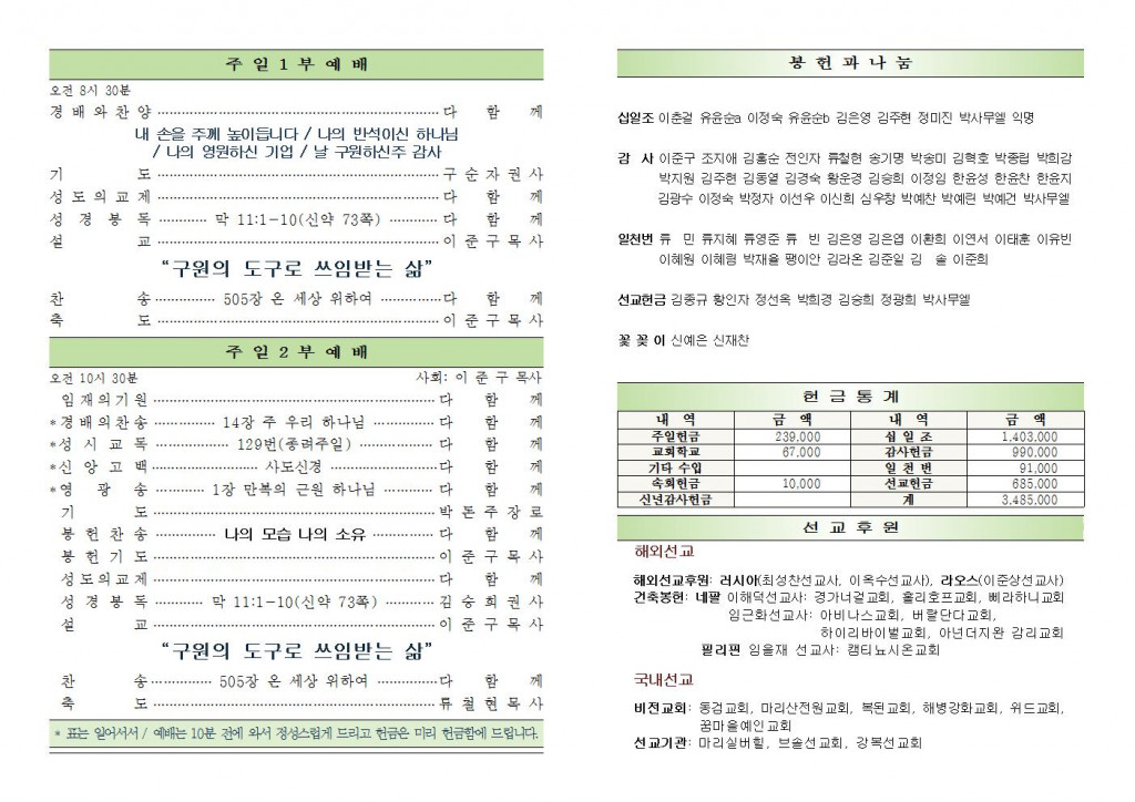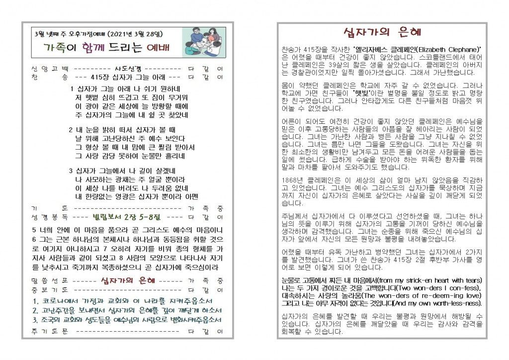 2021년 3월 21일 화도시온교회 주보