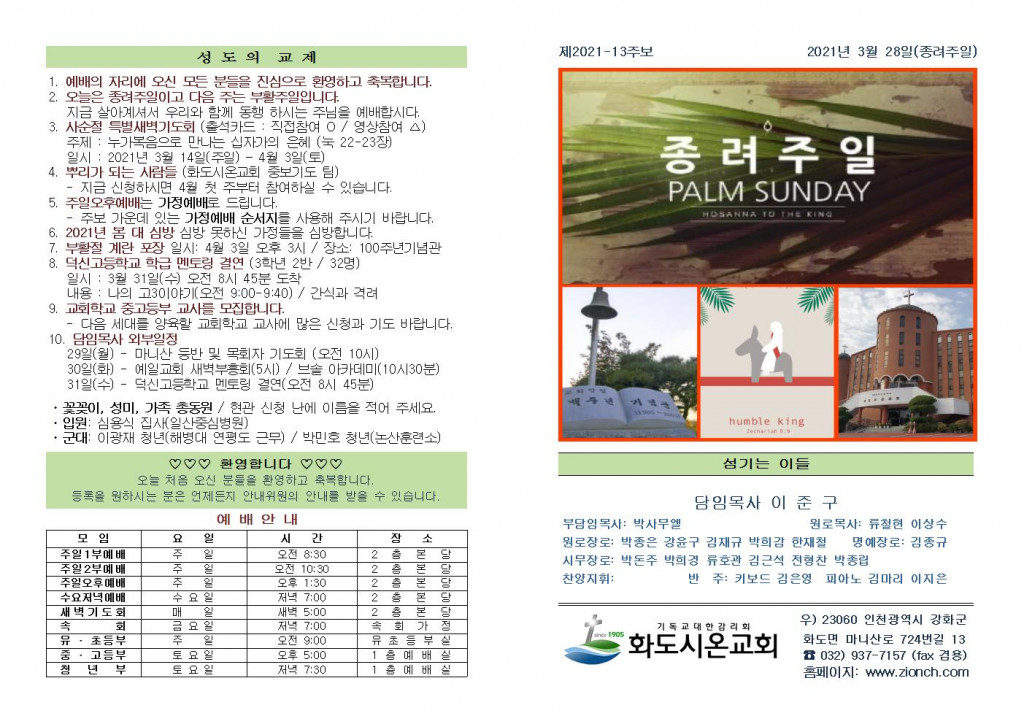 2021년 3월 28일 화도시온교회 주보