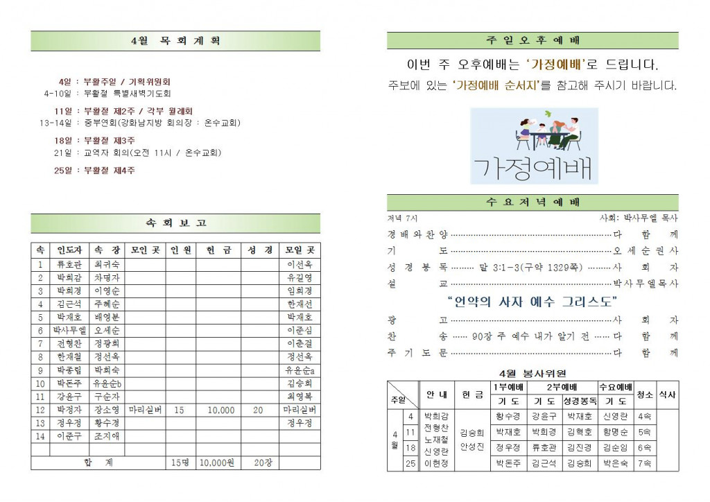 2021년 4월 11일 화도시온교회 주보