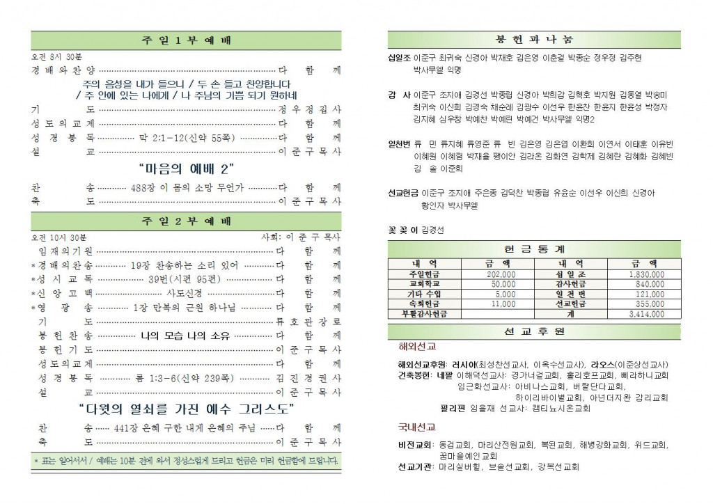 2021년 4월 25일 화도시온교회 주보