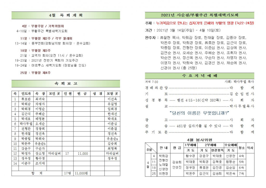 2021년 4월 11일 화도시온교회 주보