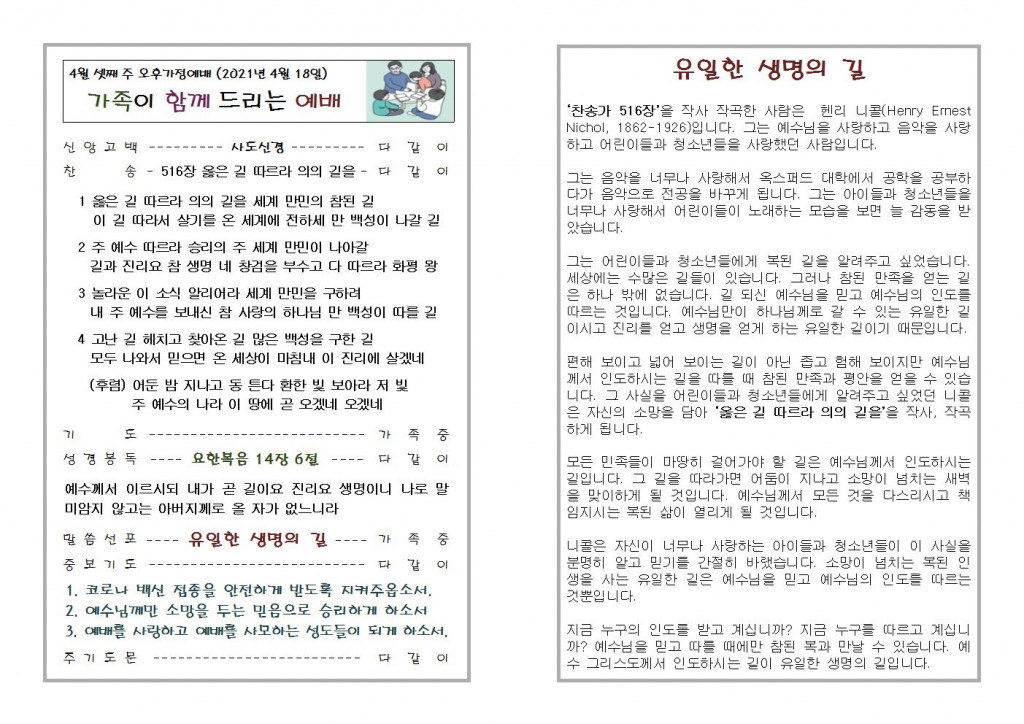 2021년 4월 4일 화도시온교회 주보