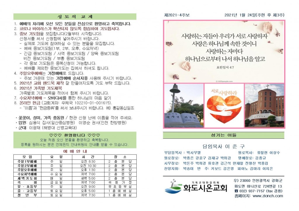 2021년 1월 24일 화도시온교회 주보