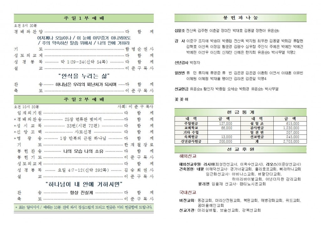 2021년 1월 31일 화도시온교회 주보