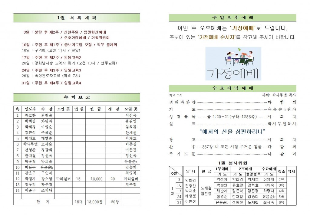 2021년 1월 17일 화도시온교회 주보