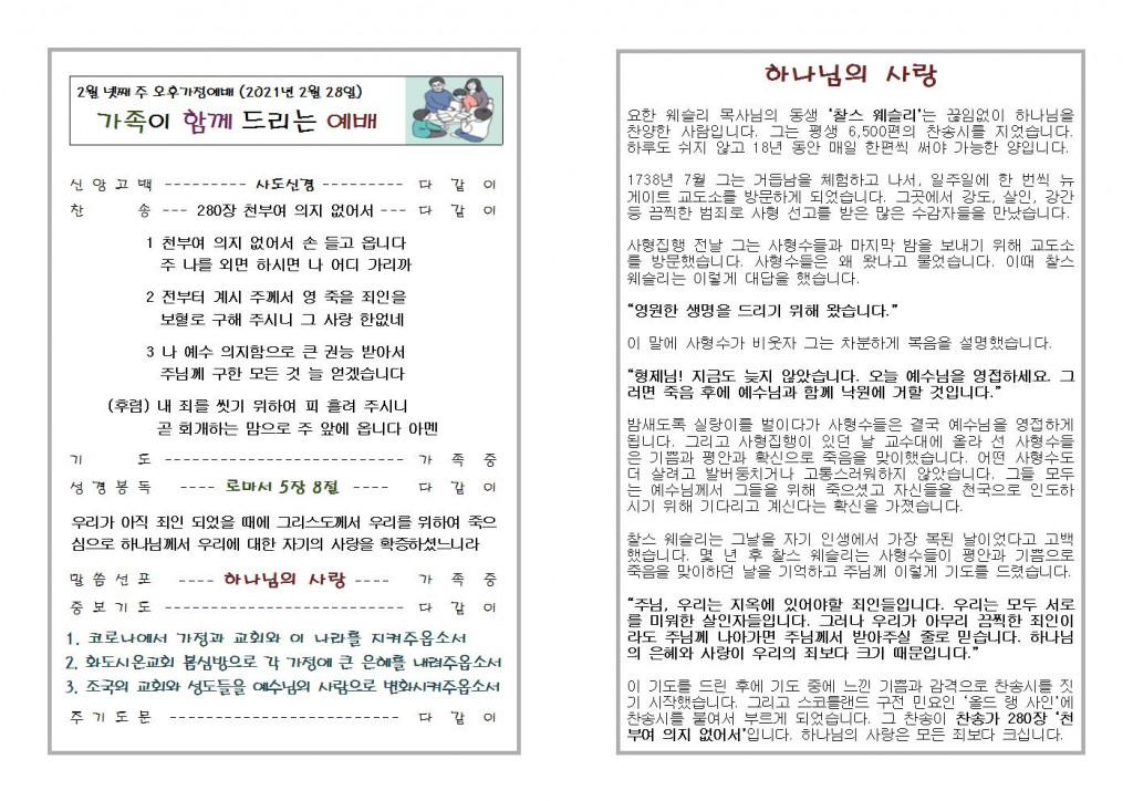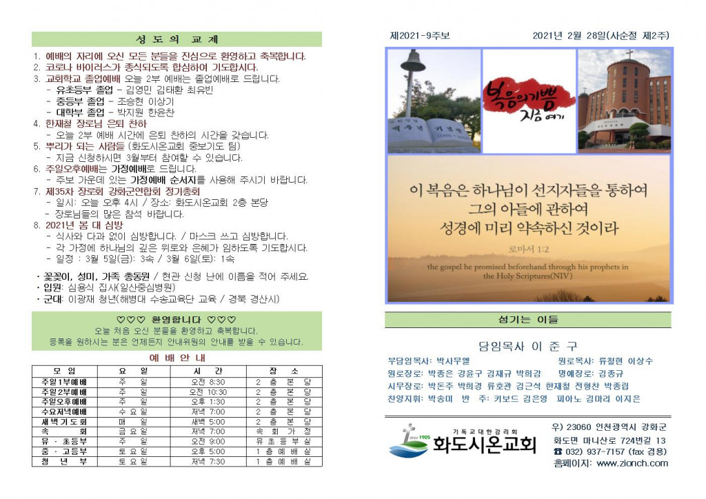 2021년 2월 21일 화도시온교회 주보