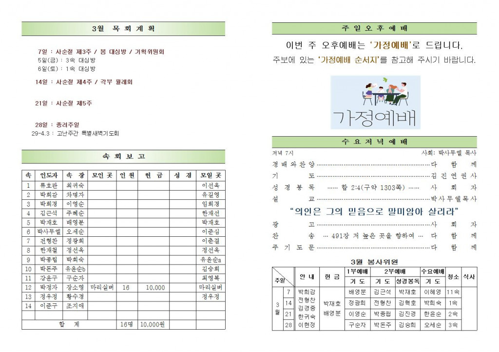2021년 2월 28일 화도시온교회 주보