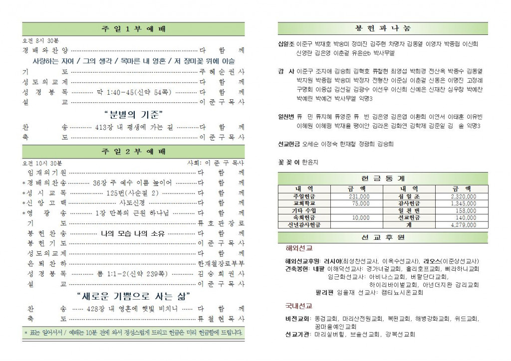 2025년 10월 26일 교회소식