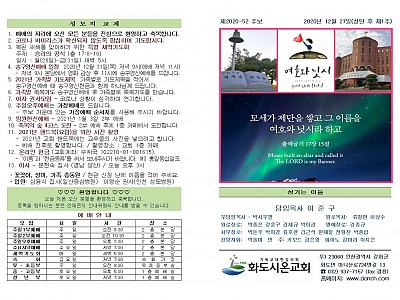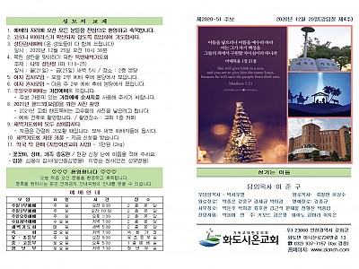 2020년 12월 25일 화도시온교회 성탄감사예배 주보