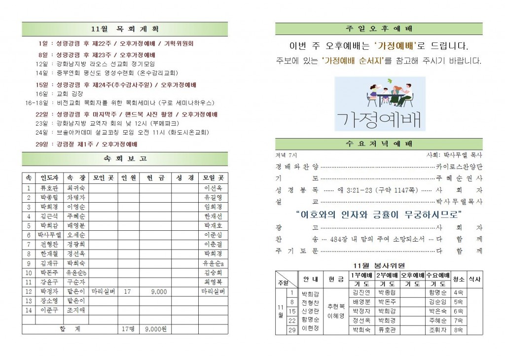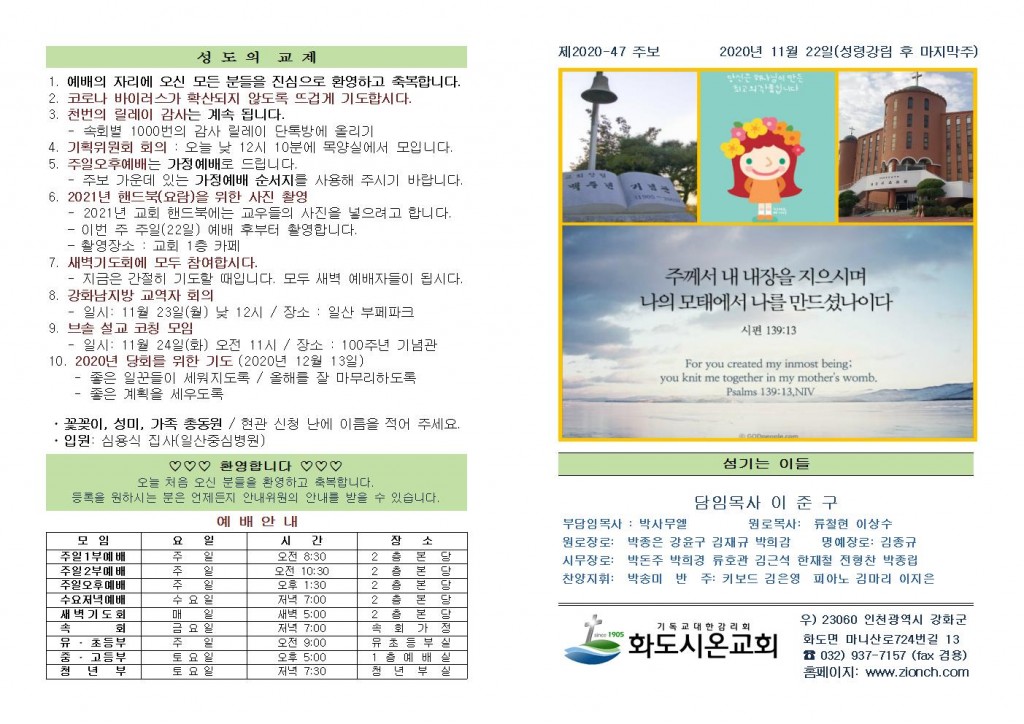 2020년 11월 15일 화도시온교회 주보