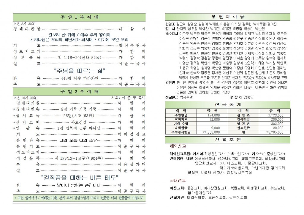2025년 10월 26일 교회소식