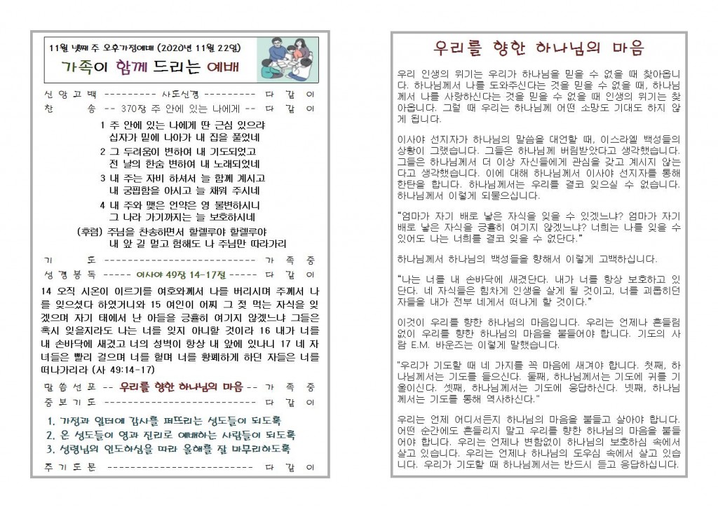 2020년 11월 22일 화도시온교회 주보