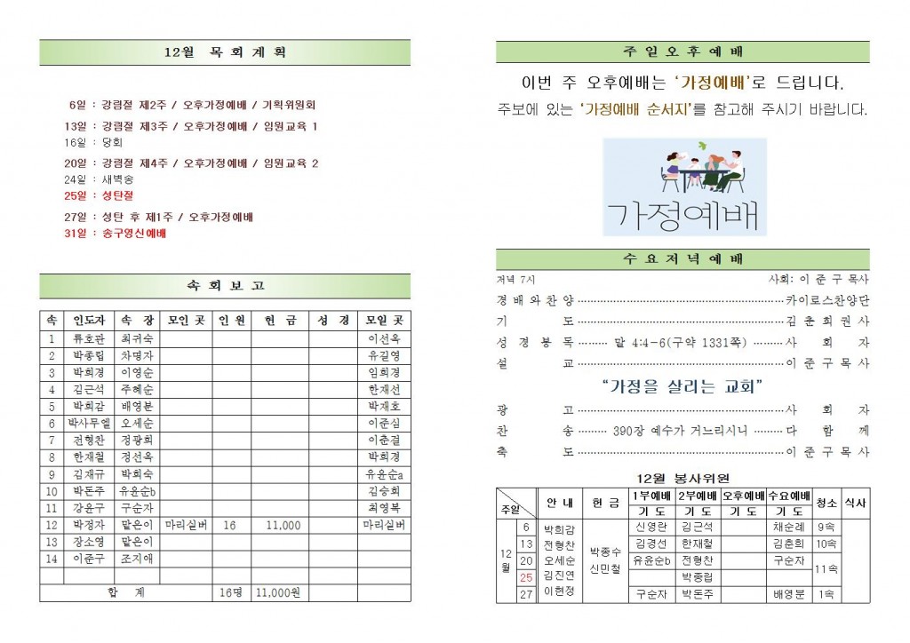 2020년 12월 6일 화도시온교회 주보