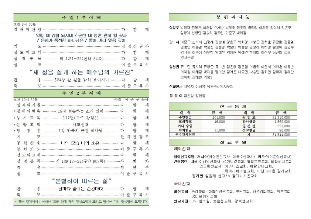 2025년 10월 26일 교회소식
