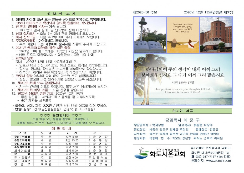 2020년 12월 20일 화도시온교회 주보