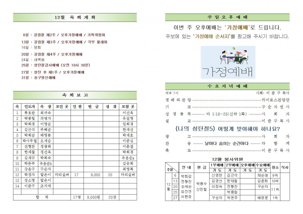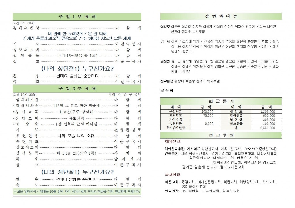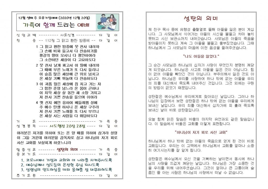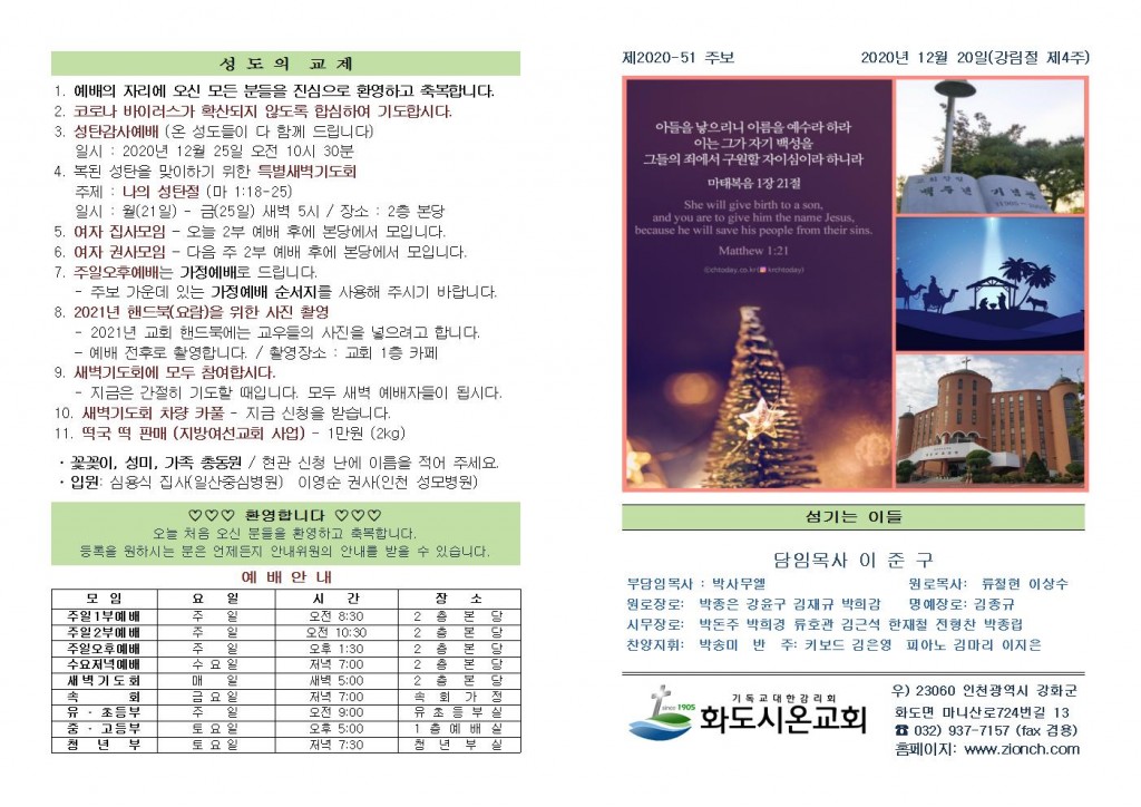 2020년 12월 25일 화도시온교회 성탄감사예배 주보