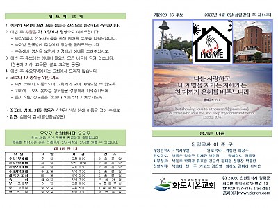 2020년 9월 6일 화도시온교회 주보
