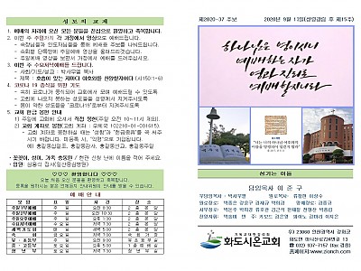 2020년 9월 13일 화도시온교회 주보