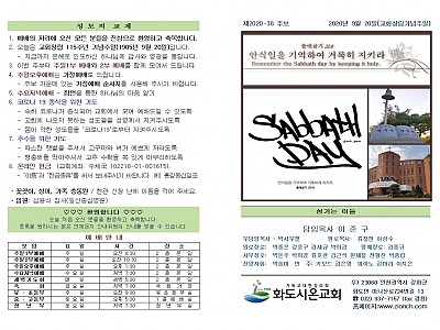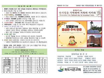 2020년 9월 20일 화도시온교회 주보