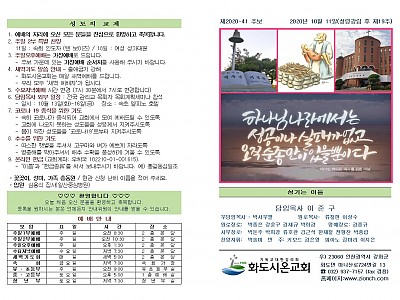 2020년 10월 4일 화도시온교회 주보
