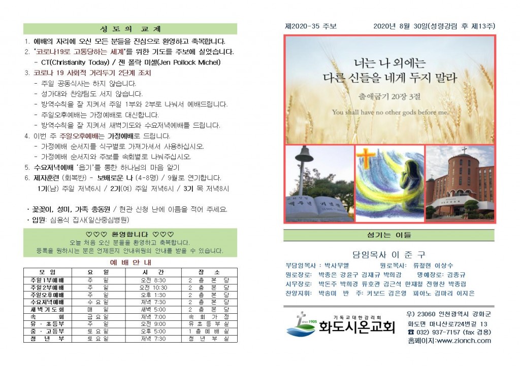 2020년 8월 30일 주일오후예배(코로나 가정예배)