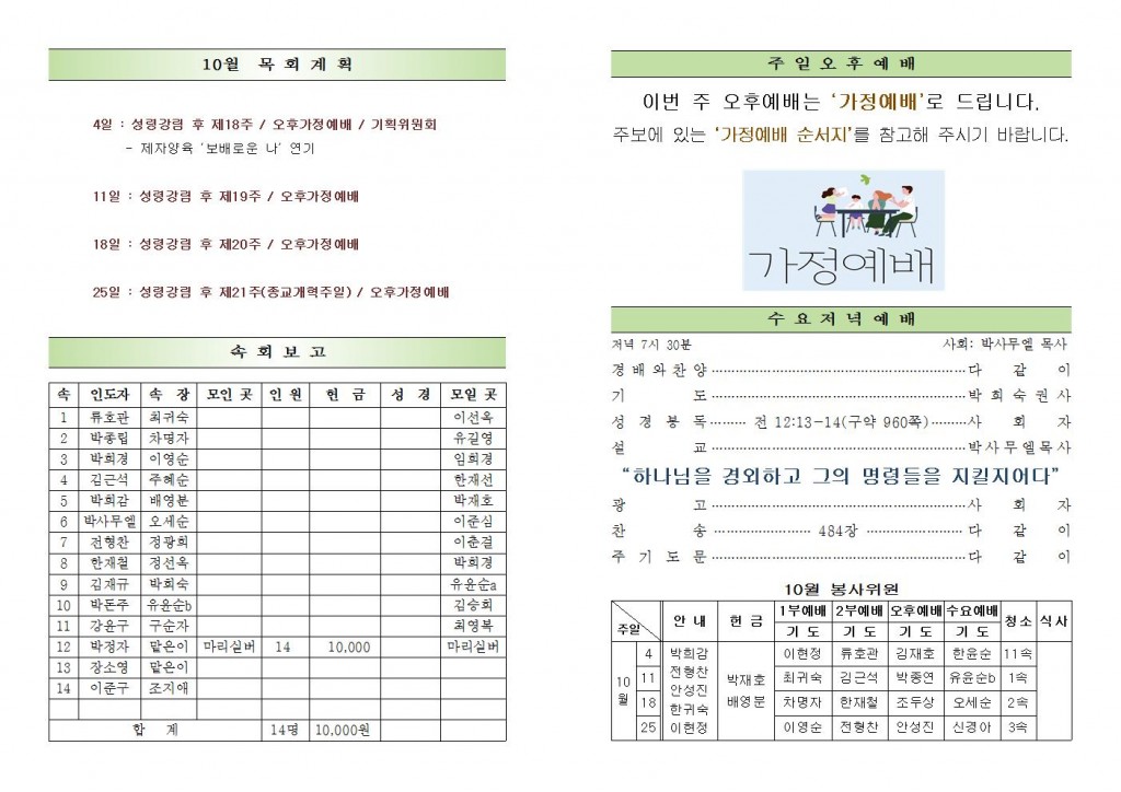 2025년 10월 26일 교회소식
