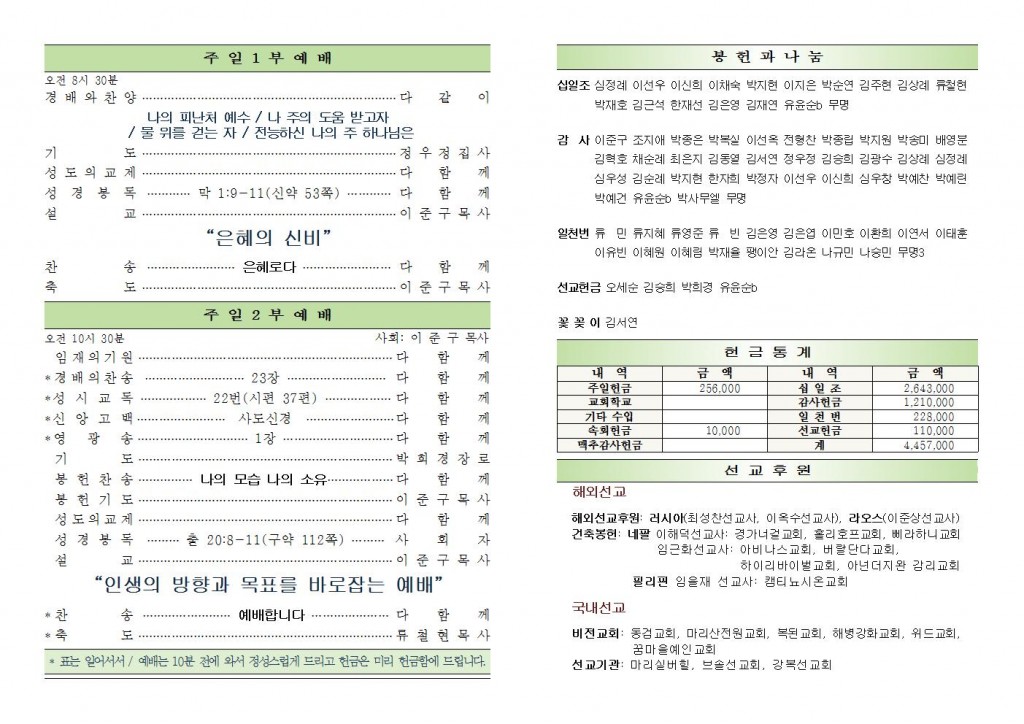2020년 10월 25일 화도시온교회 주보