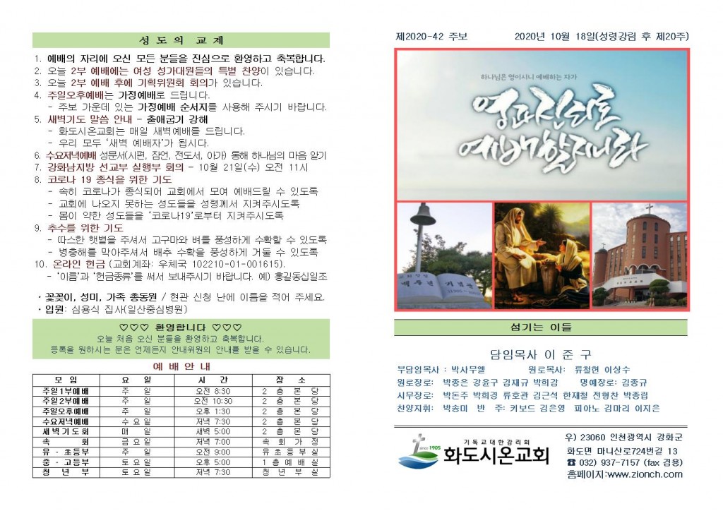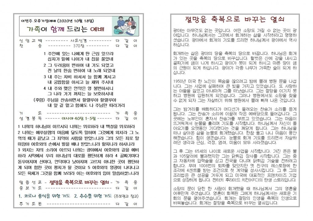 2020년 8월 30일 주일오후예배(코로나 가정예배)