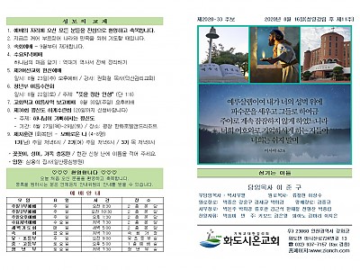 2020년 8월 23일 화도시온교회 주보