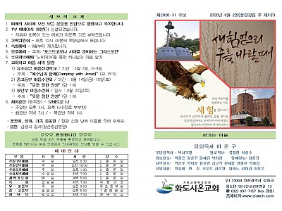 2020년 8월 2일 화도시온교회 주보